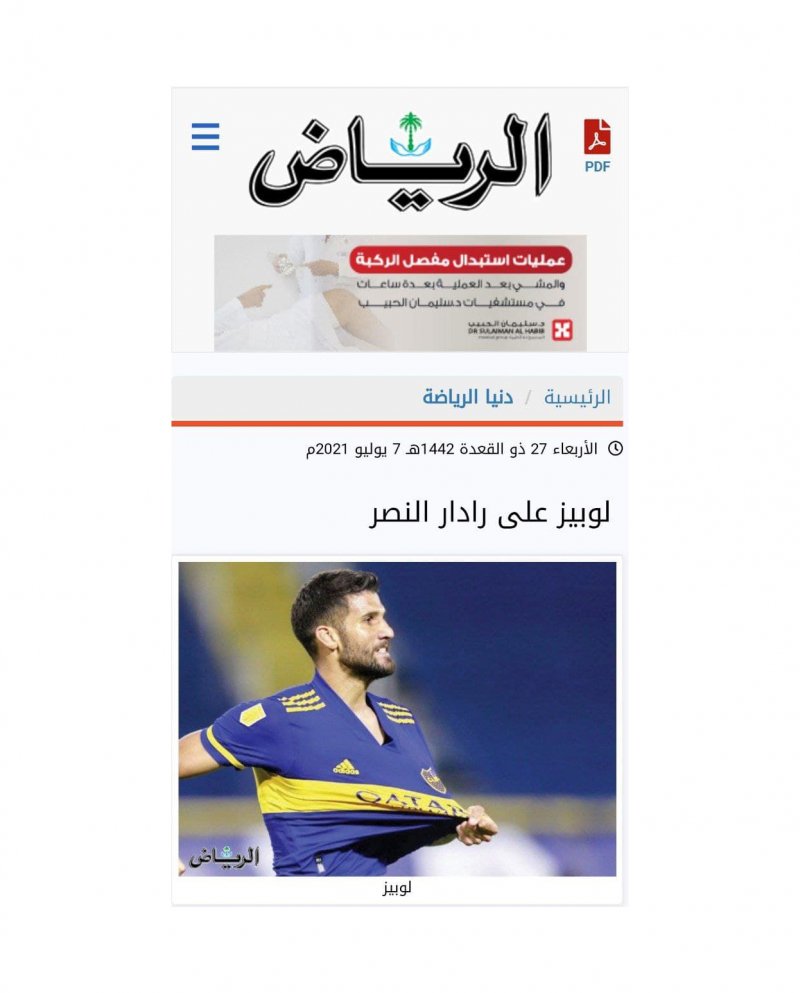 به گزارش "ورزش سه"، روزنامه الریاض عربستان در خبری مدعی شد که باشگاه النصر به سرپرستی مسلی آل معمر، مذاکرات خود را با باشگاه بوکاجونیورز آرژانتین برای به خدمت گرفتن لیساندرو لوپز مدافع این تیم آغاز کرده است و آنها قصد دارند پس از جدایی مایکون پریرا برزیلی، یک مدافع خارجی و باتجربه را به خدمت بگیرند.