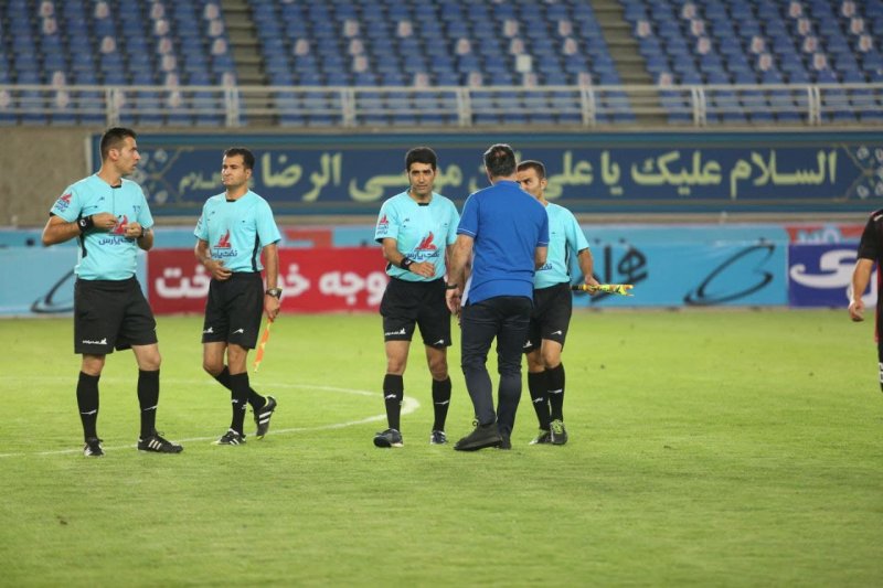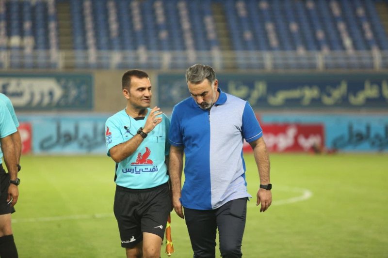 از حواشی این دیدار می توان به استقبال گرم مهدی رحمتی از محمود فکری اشاره کرد؛ در پایان بازی هم چنین سرمربی تیم نفت مسجد سلیمان به سمت زمین رفت تا گپ و گفتی با داور وسط و هم چنین کمک هایش داشته باشد. محمود فکری جز معدود مربیانی است که در پایان بازی های لیگ برتر چه با برد همراه باشد و چه با شکست به سمت داوران می رود و به آنها بابت قضاوت خسته نباشید می گوید و در مشهد هم این رفتار را بکار برد. به نظر می رسد سرمربی نفت مسجد سلیمان شب گذشته از قضاوت تیم داوری در مشهد راضی بود به این خاطر که هیچ اشاره ای به اشتباهات داوری در کنفرانس خبری نکرد.