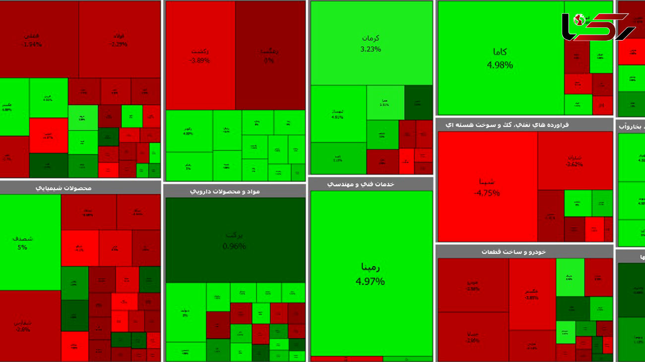 نمادهای فولاد، شستا، و فملی بیشترین اثر منفی و نمادهای رمپنا ، برکت و اخابر بیشترین اثر مثبت را بر روند حرکت شاخص گذاشتهاند.