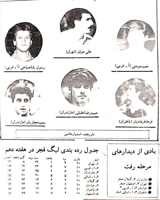 به گزارش "ورزش سه" دنیای ورزش، هفته‌نامه ای که موسسه اطلاعات آن را منتشر می‌کرد و در دهه شصت پرخواننده‌ترین نشریه ایران بود هر هفته با پوشش کامل رقابت‌های والیبال در سراسر کشور که به صورت تیم‌های منتخب استانی برگزار می‌شد اقدام به معرفی بهترین بازیکنان هفته نیز می‌کرد.