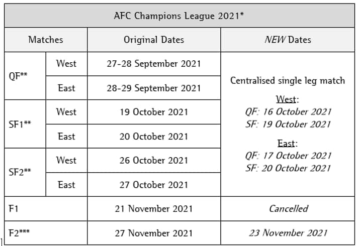 -تبدیل تمام بازیهای مرحله حذفی لیگ قهرمانان آسیا ۲۰۲۱ از حالت رفت و برگشت به حالت تک بازی