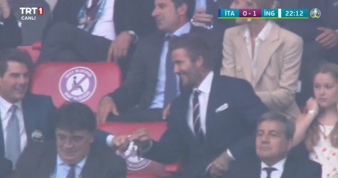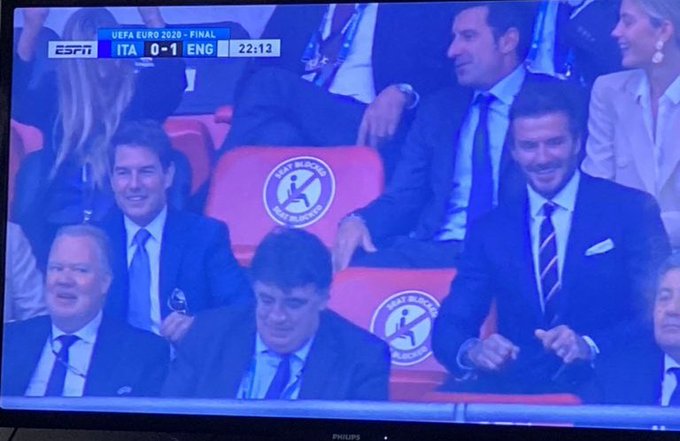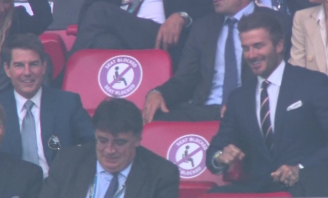 دیوید بکام اسطوره فوتبال انگلیس و تام کروز بازیگر سرشناس هالیوودی کنار هم در ورزشگاه نظاره گر بازی هستند. پس از گل شاو، بکام و تام کروز که بسیار خوشحال بودند، اینگونه واکنش نشان دادند: