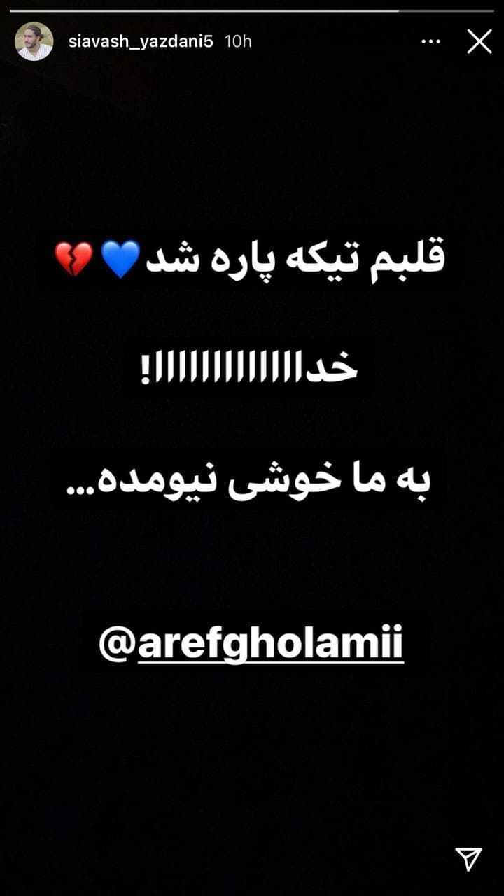 این مصدومیت طولانی مدت سبب شده تا سیاوش یزدانی با انتشار یک استوری از ناراحتی شدید خود پس از مصدومیت هم پستی و هم تیمی اش حرف بزند.