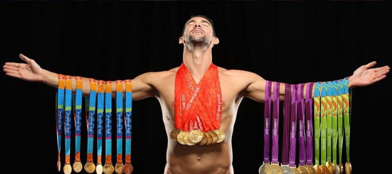 ۲۳ مدال طلا، سه نقره و دو برنز. او 6 مدال طلا و دو مدال برنز خود را در آتن ۲۰۰۴ و سپس 8 مدال طلا را در پکن به دست آورد. در لندن ۲۰۱۲ هم او 4 مدال طلا و 2 مدال نقره دیگر اضافه کرد. قبل از اینکه کار خود را در المپیک ریو با ۵ مدال طلا و یک مدال نقره پایان دهد.