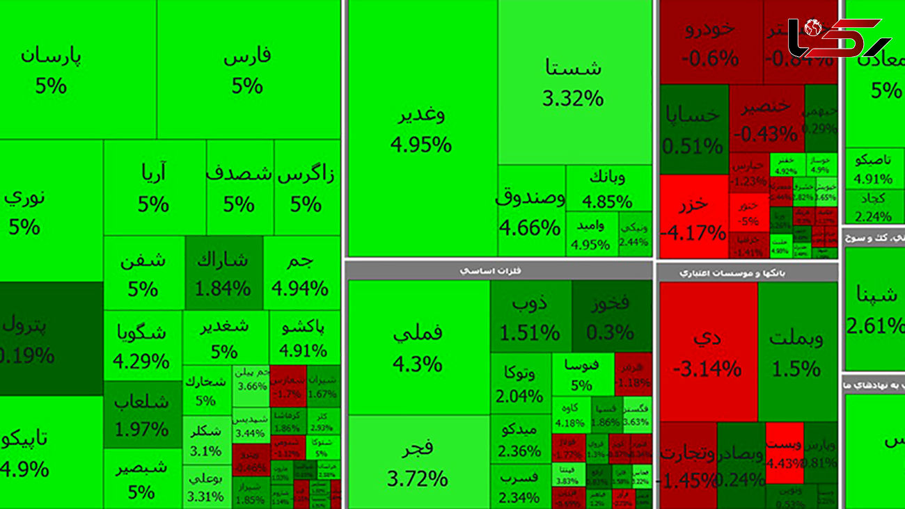 نمادهای فملی ، فارس و شستا بیشترین اثر مثبت را بر حرکت شاخص داشتند.