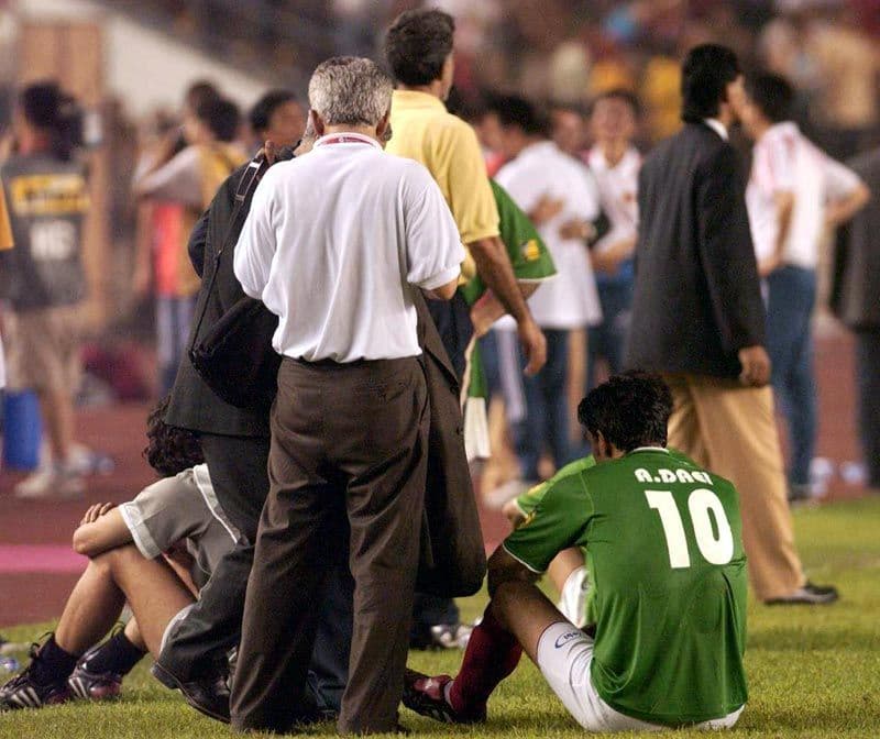 بهترین تورنمنت علی کریمی با قهرمانی تمام نشد. کریمی که در مقابل کرهجنوبی هتتریک کرده بود در دقایق پایانی و یک صحنه با به هم ریختن دفاع چین با تکل از پشت مواجه شد اما در کمال ناباوری داور بازیکن چین را اخراج نکرد و برعکس اعتراض محمد علوی به داور باعث شد تا ایران با دومین اخراجی خود هم مواجه شود