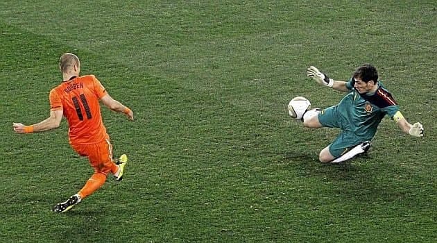 جالب اینجاست که این واکنش نویر، شباهت بسیار زیادی به یکی از صحنه های معروف فینال جام جهانی 2010 داشت؛ جایی که ایکر کاسیاس با حرکت زیبای پای خود در موقعیت تک به تک، ضربه آرین روبن را مهار کرد؛ مهاری که اسپانیا را در بازی نگه داشت و جزو یکی از ماندگارترین سیوهای دوران فوتبالی ایکر کاسیاس بود.