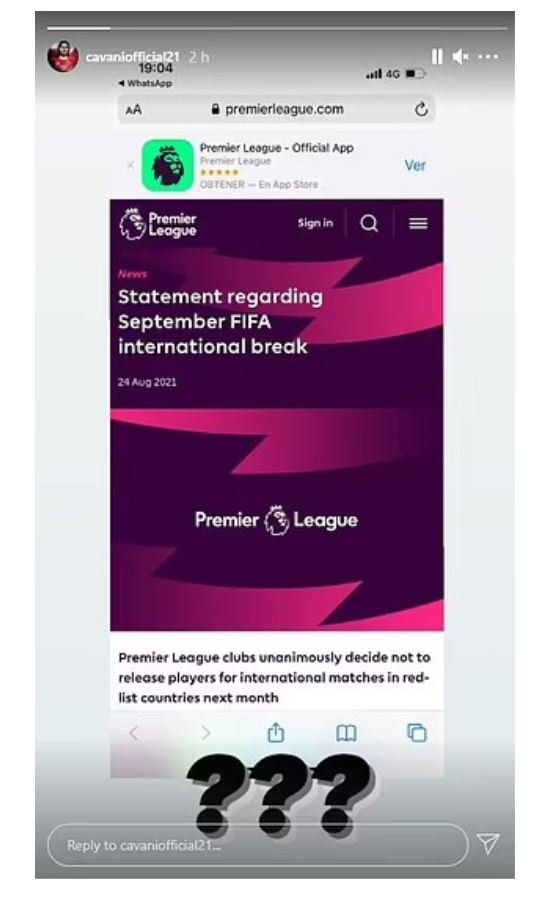 به نظر می رسد ادینسون کاوانی مهاجم منچستریونایتد و تیم ملی اروگوئه با این تصمیم سه شنبه شب لیگ برتر مخالفت است.