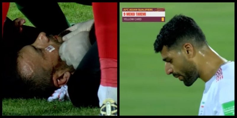 اما در دقیقه ۸۱ طارمی در یک نبرد هوایی آرنج طارمی به صورت بازیکن حریف برخورد کرد و او مصدوم شد. داور که این صحنه از چشمش دور نمانده بود مهدی را با کارت زرد جریمه کرد. شاید اگر داور سخت گیرانه‌تر قضاوت می‌کرد طارمی با یک کارت قرمز بد موقع مواجه می‌شد. هرچند که در صحنه معلوم بود عمدی در کار مهاجم ایران نبوده اما در این سطح و با توجه به بازی‌های حساس پیش رو باید در حرکاتش دقت بیشتری به خرج دهد.