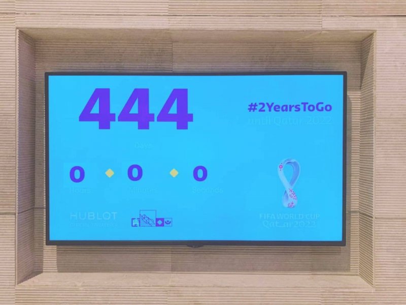 صفحه نمایشگری که در دوحه نصب شده، عدد 444 روز را به عنوان زمان باقی مانده تا شروع جام جهانی نشان می‌دهد.