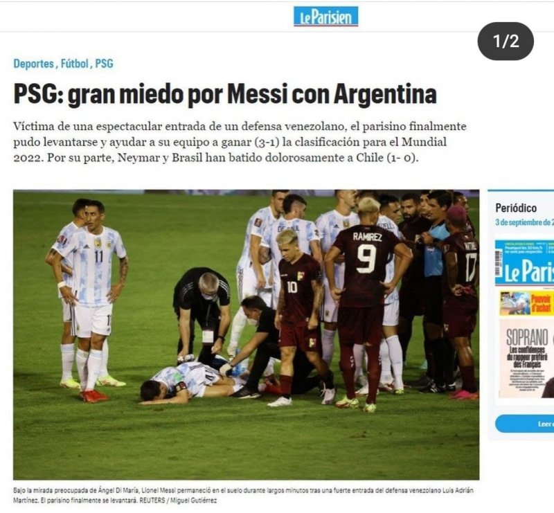 اکیپ و لوپاریزین دو نشریه معتبر چاپ پاریس نیز با تیتر "ترس بزرگ پی اس جی"، به اتفاق بامداد امروز در مورد مسی واکنش نشان داده اند:
