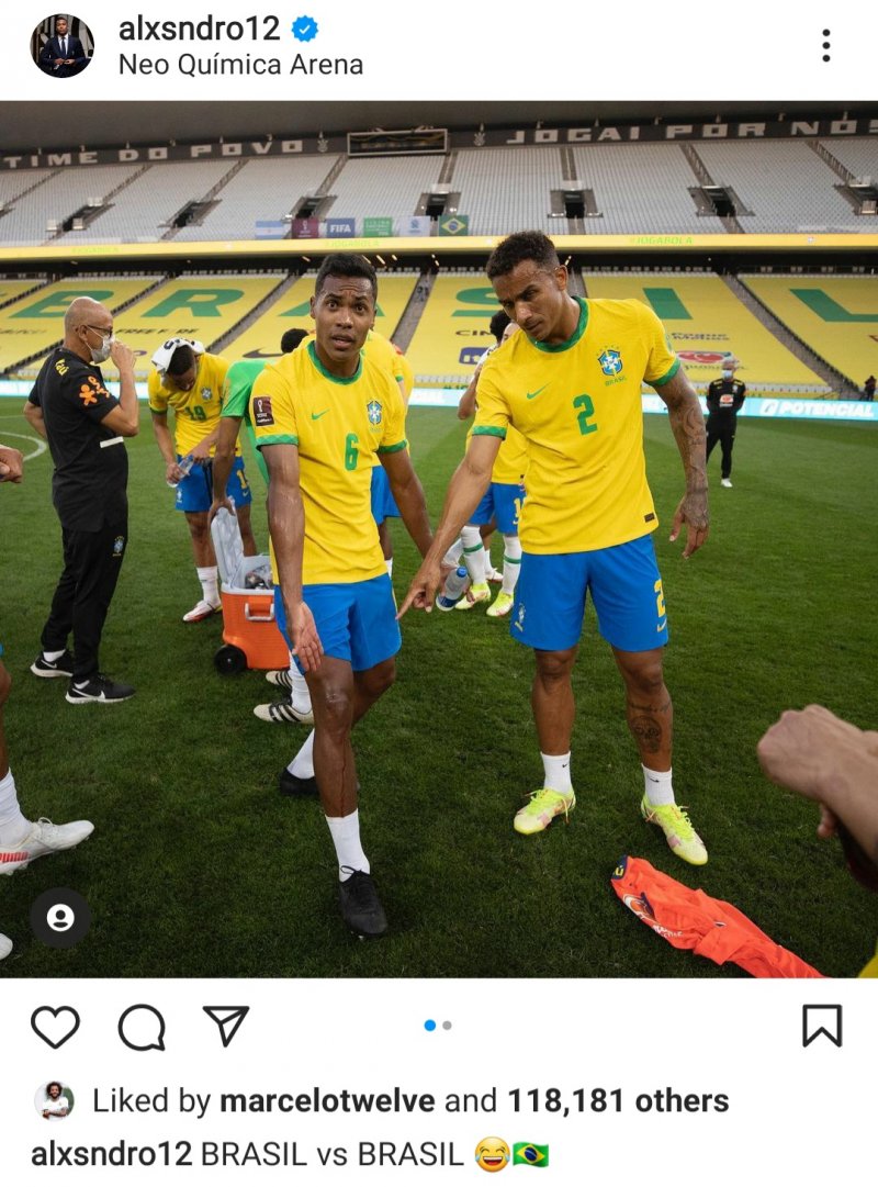 مسابقه به طور رسمی تعلیق شد و برزیل در یک بازی دوستانه داخلی به میدان رفت؛ جایی که روی یک برخورد ضربه ای به پای الکس ساندرو وارد شد. ستاره برزیلی نیز از این فرصت استفاده کرد و تصویری از پای آسیب دیده اش را منتشر کرد و به شوخی نوشت: "برزیل در مقابل برزیل(ایموجی خنده و پرچم برزیل)"