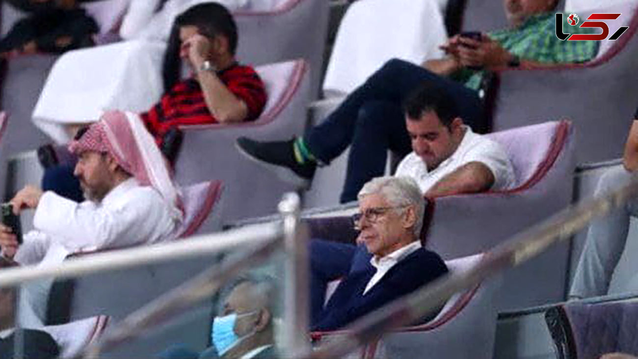 سرمربی سابق آرسنال برای تماشای بازی تیم های فوتبال ایران و عراق در ورزشگاه حاضر شد.
