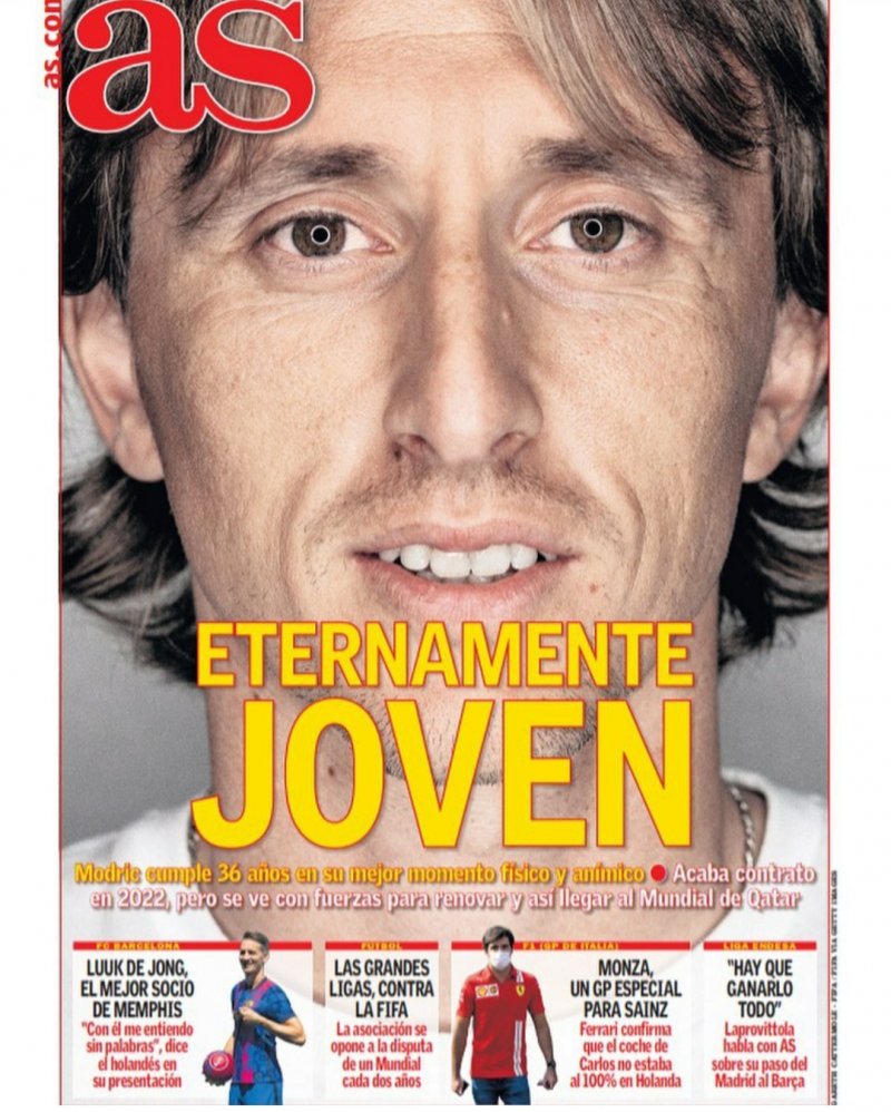 به طور قطع لوکا مودریچ یکی از مهمترین ارکان رئال مادرید تحت هدایت کارلو آنچلوتی نیز خواهد بود و سرمربی ایتالیایی حساب ویژه ای روی او باز کرده است. اما مودریچ در حالی روز گذشته 36 ساله شد که همچنان یکی از بهترین هافبک های دنیا محسوب می شود و مهرهای کلیدی در پرافتخارترین تیم فوتبال اروپاست. در همین راستا نشریه آاس اسپانیا به مناسبت تولد 36 سالگی ستاره کروات به تمجید از او پرداخته و صفحه اصلی امروز خود را با تیتر "همیشه جوان" به این بازیکن اختصاص داده است.