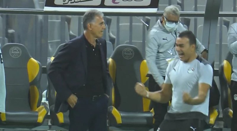 کیروش پس از باز شدن دروازه لیبی خوشحالی خاصی انجام نداد، اما برخلاف او عصام الحضری، دروازهبان سابق تیم ملی مصر که مُسنترین بازیکن تاریخ جامهای جهانی هم محسوب میشود، شادی گل زیادی داشت که سوژه رسانههای مصری هم شد