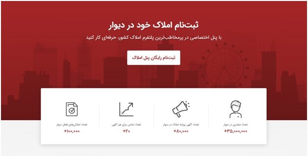 دیوار برای ساده کردن مدیریت آگهیها و همچنین بهصرفه کردن فعالیت حرفهای دفاتر املاک در شهرهای تهران، کرج، قم، اهواز، شیراز، اصفهان، مشهد و تبریز پنلی اختصاصی دارد که ثبتنام در آن رایگان است.