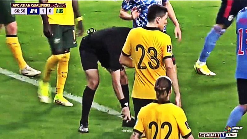در دقیقه 67 بازی آجدین هرستیچ در برخورد با مدافع حریف تعادل خود را در داخل محوطه جریمه ژاپن از دست داد تشخیص اولیه داور اعلام پنالتی به سود استرالیا بود. مارتین بویل از استرالیا پشت توپ ایستاد تا این ضربه پنالتی را بزند اما ناگهان داور اعلام کرد که تشخیص VAR خطا بیرون از محوطه رخ داده و پنالتی در کار نیست!