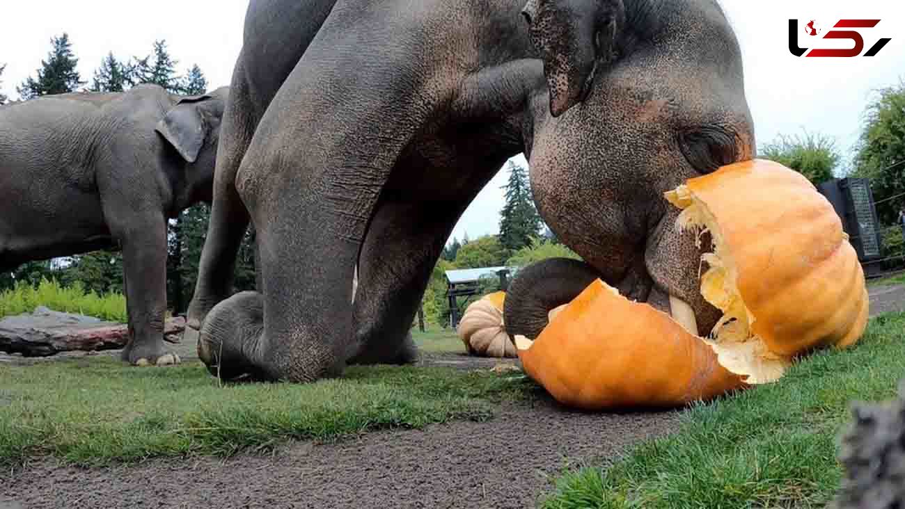 فیل ها هم از کدو های جشن هالووین بی نصیب نماندند.