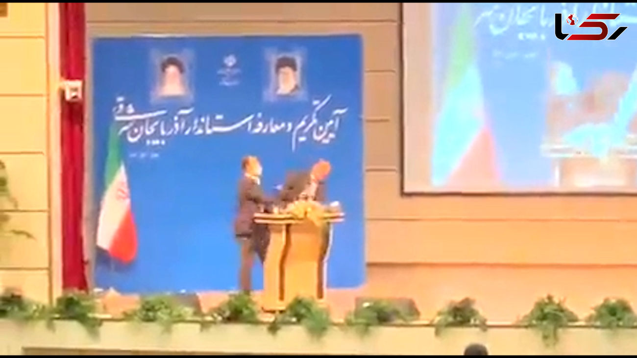 صبح امروز آیین معارفه زینالعابدین خرم رضوی استاندار جدید آذربایجان شرقی با حضور وزیر کشور برگزار شد که یکی از شرکت کنندگان با رفتن بر روی سن، به صورت وی سیلی زد.