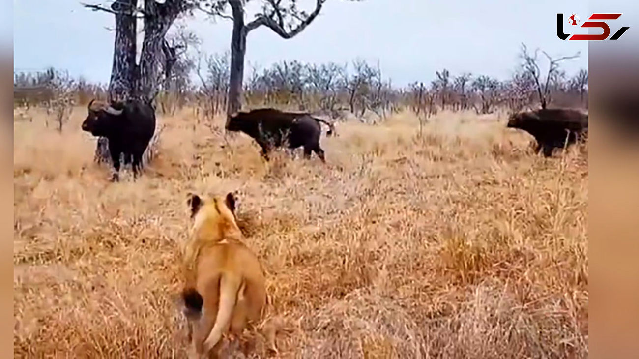 فیلم ناباورانه از حمله گاومیش ها به شیرهای وحشی