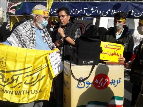 به گزارش همشهری آنلاین به نقل از ایسنا، مراسم سیزده آبان با شعار محوری بزرگداشت یوم الله ۱۳ آبان « ایستادگی و مقاومت مردم ایران رمز افول سلطه استکباری آمریکاست» آغاز شد.