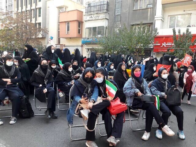 در مراسم سیزده آبان ۱۴۰۰ در تهران که صبح امروز ؛ پنجشنبه در مقابل لانه جاسوسی و خیابان های منتهی به آن برگزار شد، تعدادی از دانش آموزان و دیگر اقشار مختلف تهران حضور یافتند.