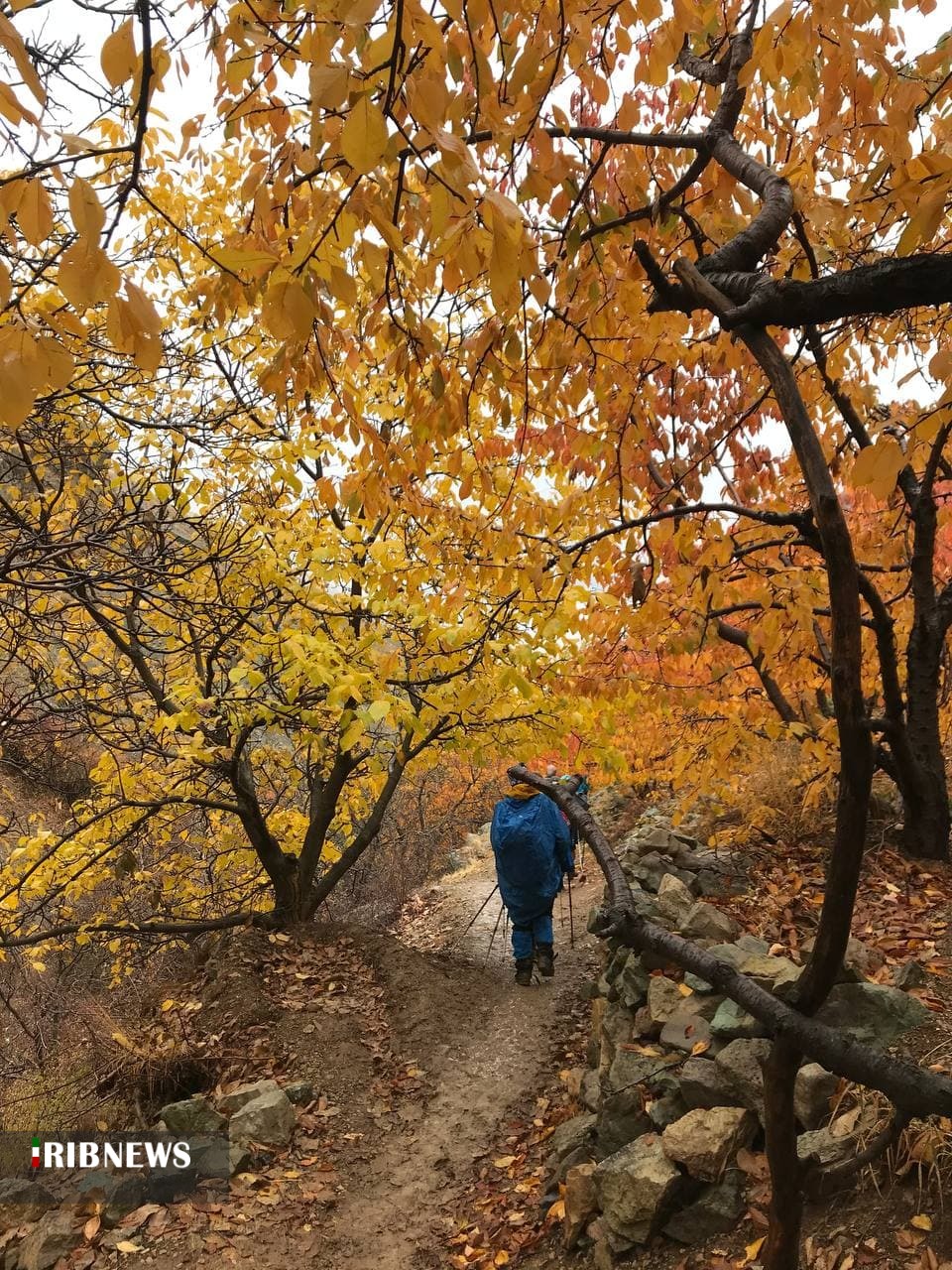 وارد دره اصلی شدیم که رودخانهای در آن جریان داشت باران همچنان میبارید و دوستان همگروه در حال صحبت کردن و لذت بردن از هوای لطیف بارانی و طبیعت پاییزی منطقه بودند از کنار باغهای شخصی عبور کردیم مسیر خوبی است شیب قابل تحملی دارد.