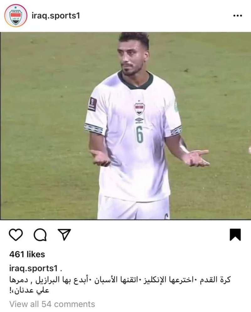 ترجمه: فوتبال را انگلیسیها اختراع کردند،اسپانیایی ها آن را ماندگار کردند،برزیلی ها آن را زیبا کردند و علی عدنان آن را تخریب کرد.