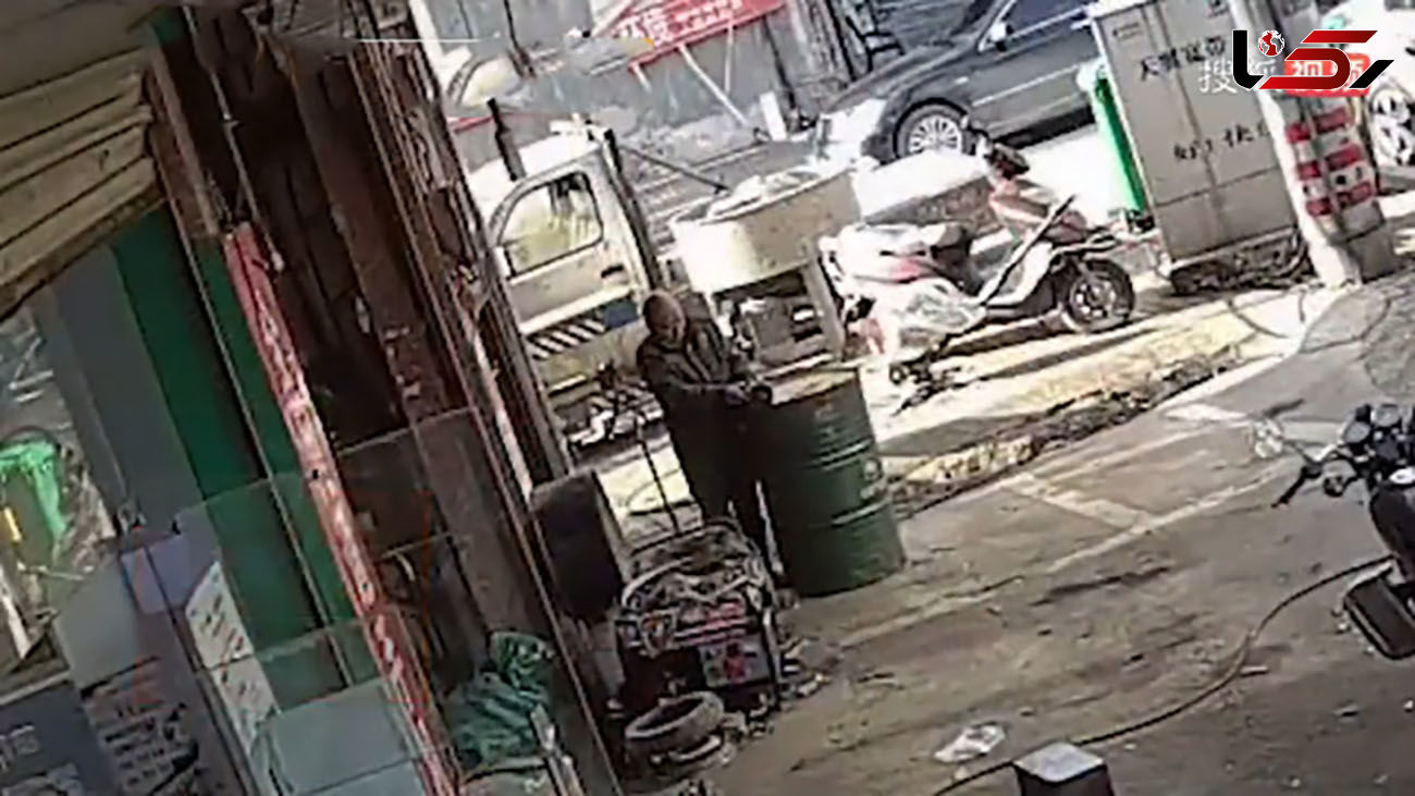 به گزارش رکنا، این بشکه به طور ناگهانی در مقابل کارگر چینی منفجر شد اما به او آسیبی نرسید.