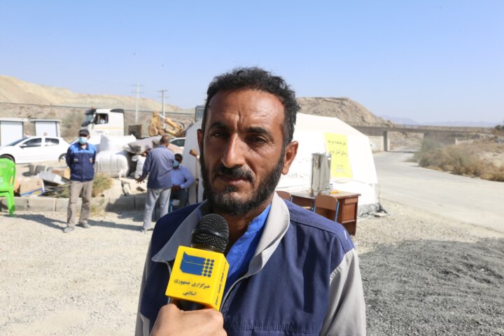 غلام محمدی با همان لهجه شیرین خودش گفت: ساعتهایی سپری شد و چادر آوردند که ابتدا در پایین و گودی بود، بعد چادرها را به اینجا آوردند که شرایط را خودتان میبیند و نمی دانیم بعد از این چه میشود.