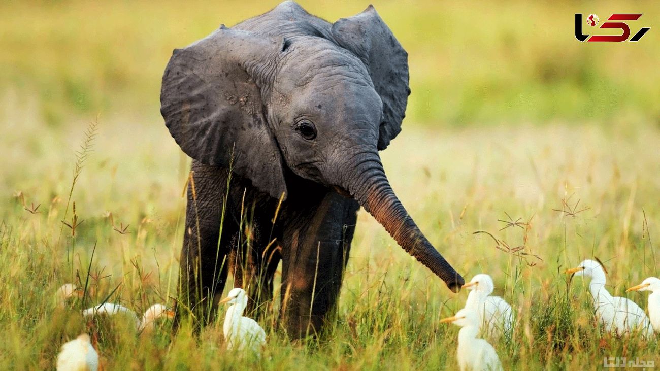 همبازی شدن بچه فیل با پرندگان + فیلم