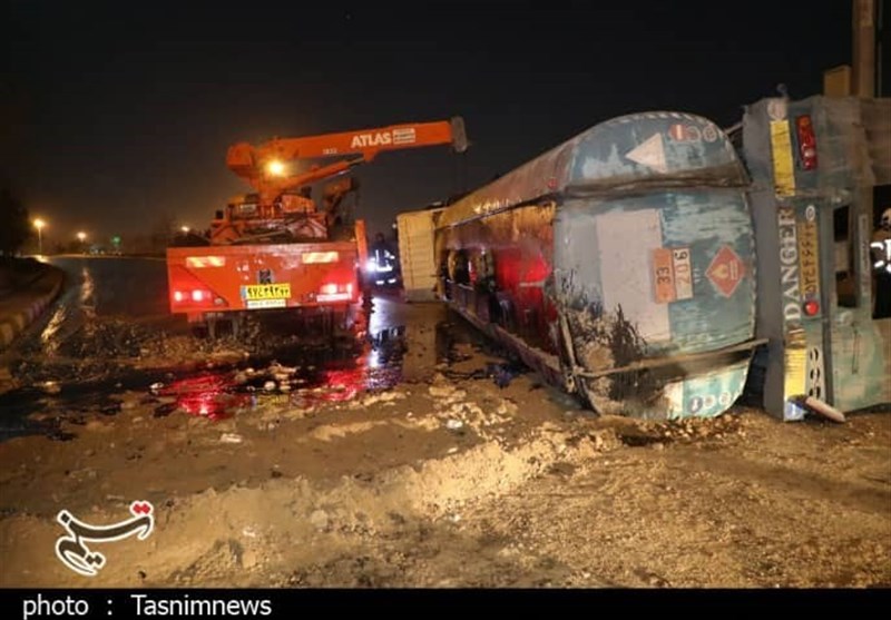 گروه استانها-واژگونی تانکر25 هزار لیتری حامل مواد سوختنی(نفت کوره)در حوالی پل غدیر مشهد توسط نیروهای آتشنشانی به منظور جلوگیری از نشت مواد سوختنی مهار شد.