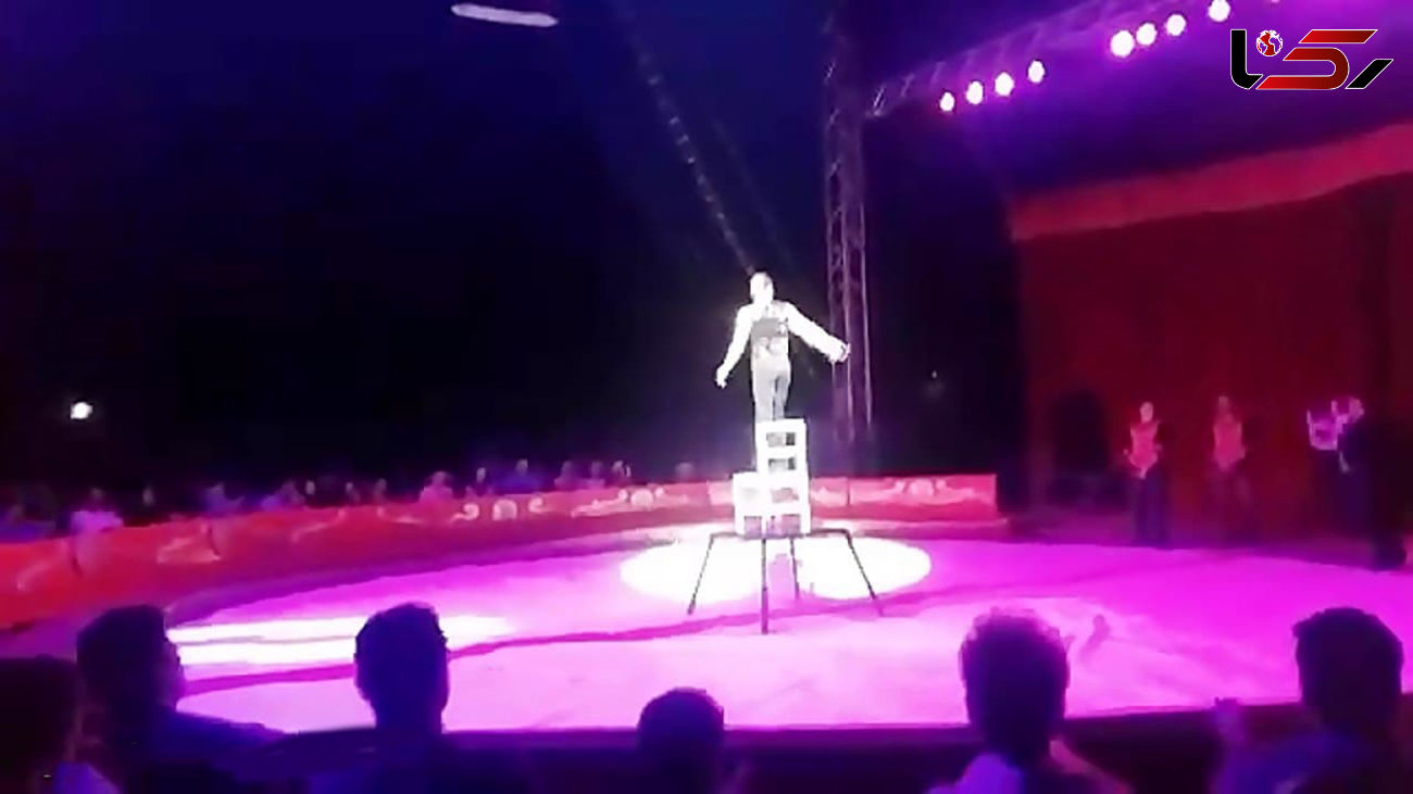 یک مرد بندباز در روسیه به همراه دختری که روی شانههایش بود، قصد اجرای نمایش در سیرک را داشت.