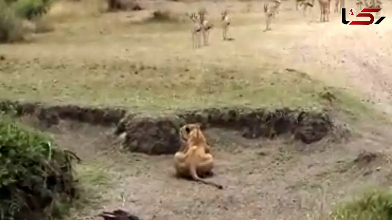 حمله ناموفق یک شیر را به گوزن ببینید.