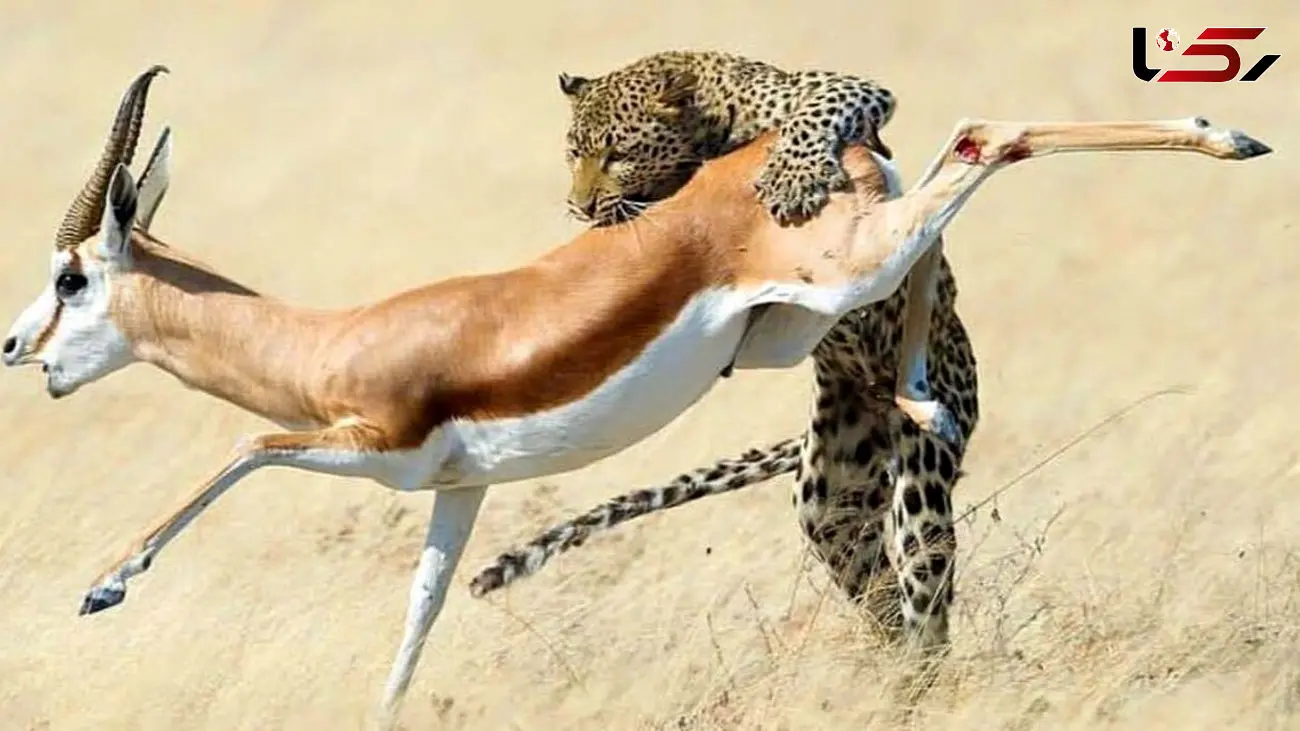 یک پلنگ در آفریقای جنوبی آهو را شکار کرد.