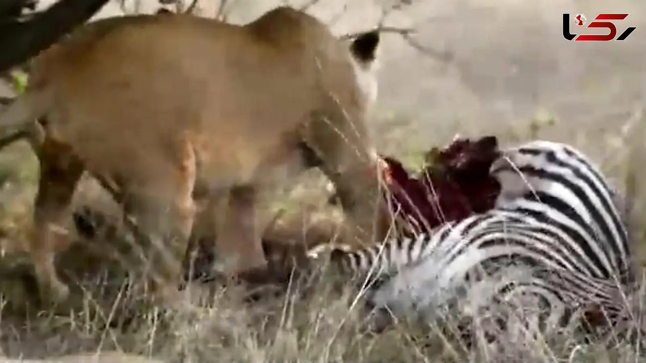 شکار گورخر و استراحت شیرها + فیلم