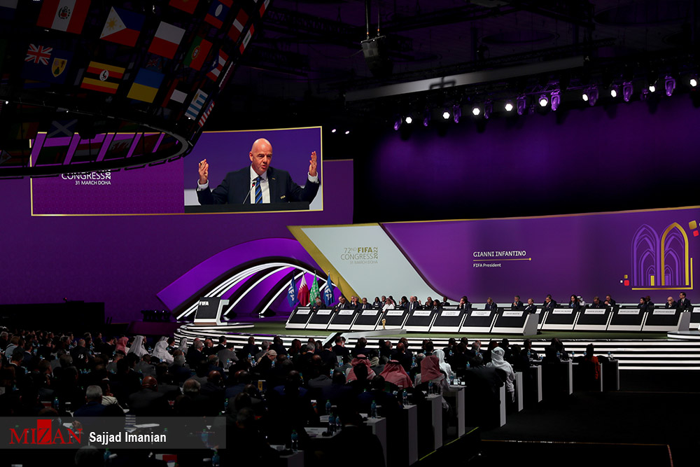 هفتاد و دومین کنگره فیفا پنجشنبه با حضور «جیانی اینفانتینو» رئیس این نهاد بین‌المللی در شهر دوحه برگزار شد.