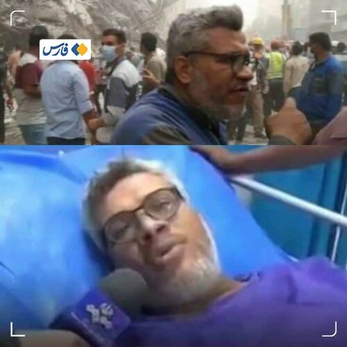 گزارشگر صداوسیمای مرکز آبادان نیز به محض اطلاع از این موضوع برای تهیه گزارش در بیمارستان با فرد مصدوم مصاحبه میکند که در این مصاحبه فرد مدعی میشود که به مدت ۳۰ساعت در زیر آوار بوده و با کمک کارکنان آتشنشانی بیرون کشیده شده است.