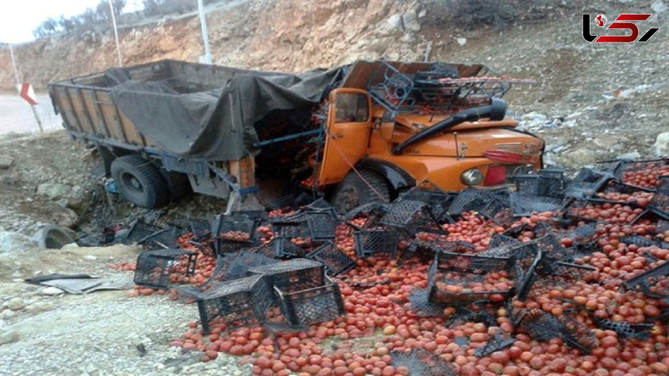 بوی انسانیت در صحنه واژگونی کامیون + فیلم جاده پر از گوجه
