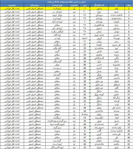 وی اسامی مصدومان را به شرح ذیل اعلام کرد: