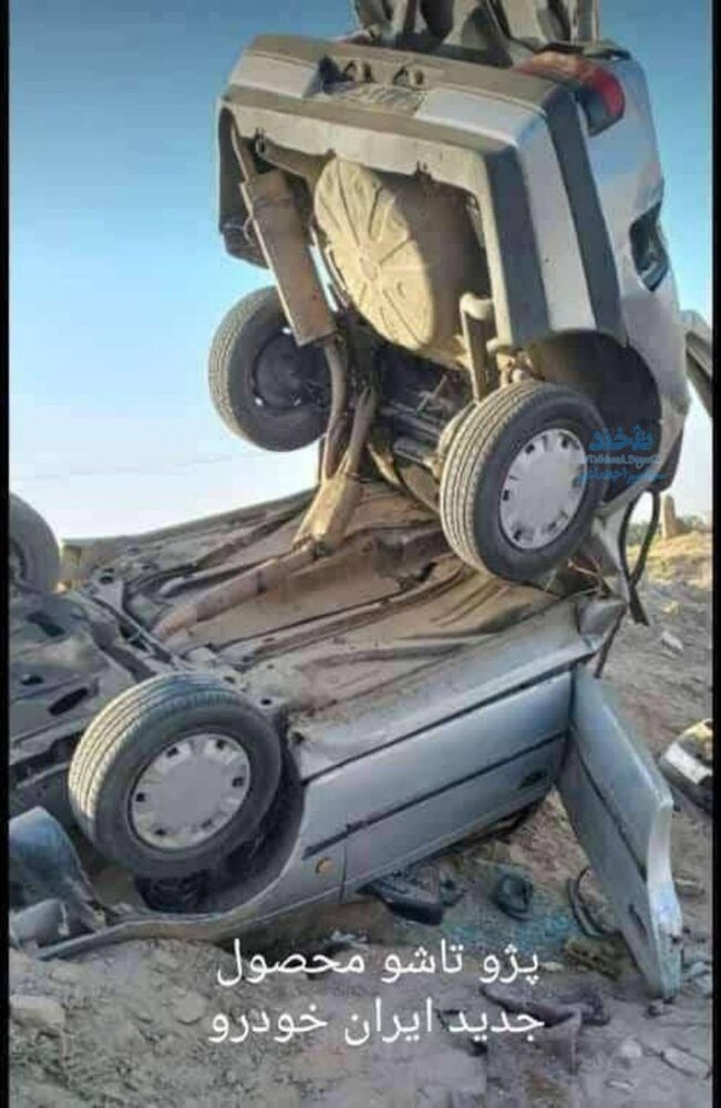 تصویری از پژو بعد از تصادف در فضای مجازی سوژه کاربران شده است.