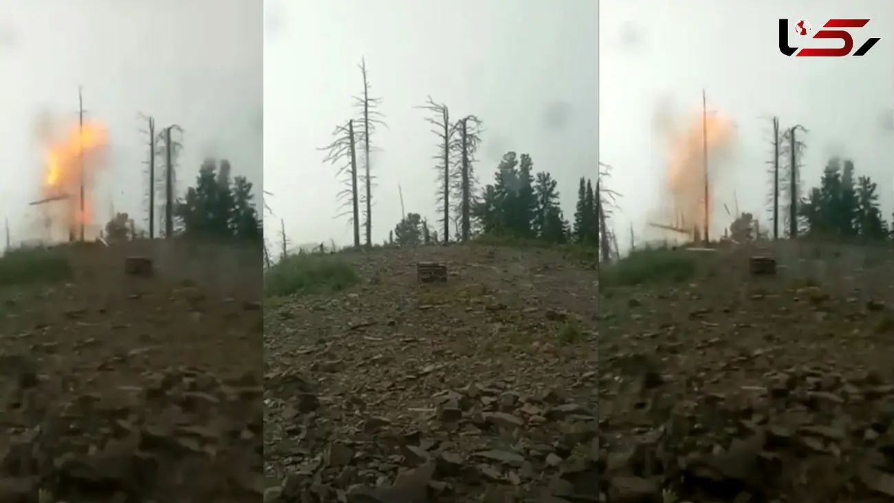 فیلم دیدنی از لحظه پودر شدن یک درخت توسط صاعقه / ببنید