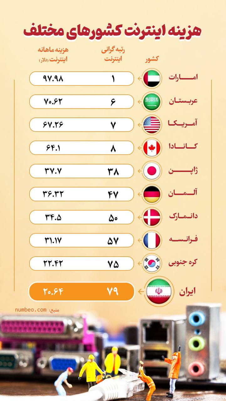 هزینه اینترنت کشورهای مختلف
