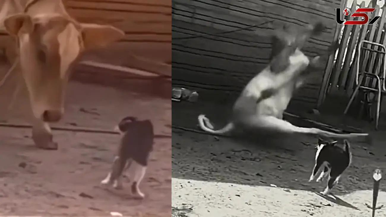 فیلم ضربه فنی گاو ترسو توسط گربه خشمگین / ببینید و باورکنید
