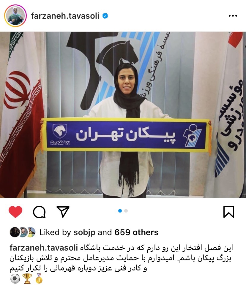 دروازهبان مطرح فوتسال زنان ایران که در میان اهالی فوتسال به عقاب زنان نیز معروف است از سال ۱۳۸۲ تاکنون به عنوان دروازهبان اصلی تیم ملی وظیفه حفاظت از چارچوب تیم ملی را داشته در جدیدترین پُست اینستاگرامی خود خبر عقد قرارداد با تیم پیکان مدافع عنوان قهرمانی را منتشر کرده و امیدوار است که بتواند این قهرمانی را تکرار کند.