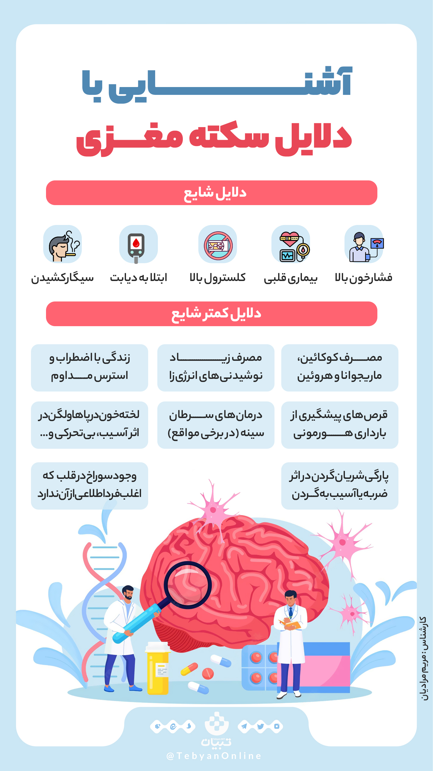 سکته مغزی یکی از علتهای شایع مرگ و ناتوانی در دنیاست و برای هرکسی و در هر سنی میتواند رخ دهد. مرکز کنترل و پیشگیری از بیماریها (CDC)، فشارخون بالا، بیماری قلبی، کلسترول بالا، دیابت و سیگارکشیدن را شایعترین علتهای سکته مغزی میداند؛ اما سکته مغزی دلایل کمتر شایعی هم دارد که باید بدانید.