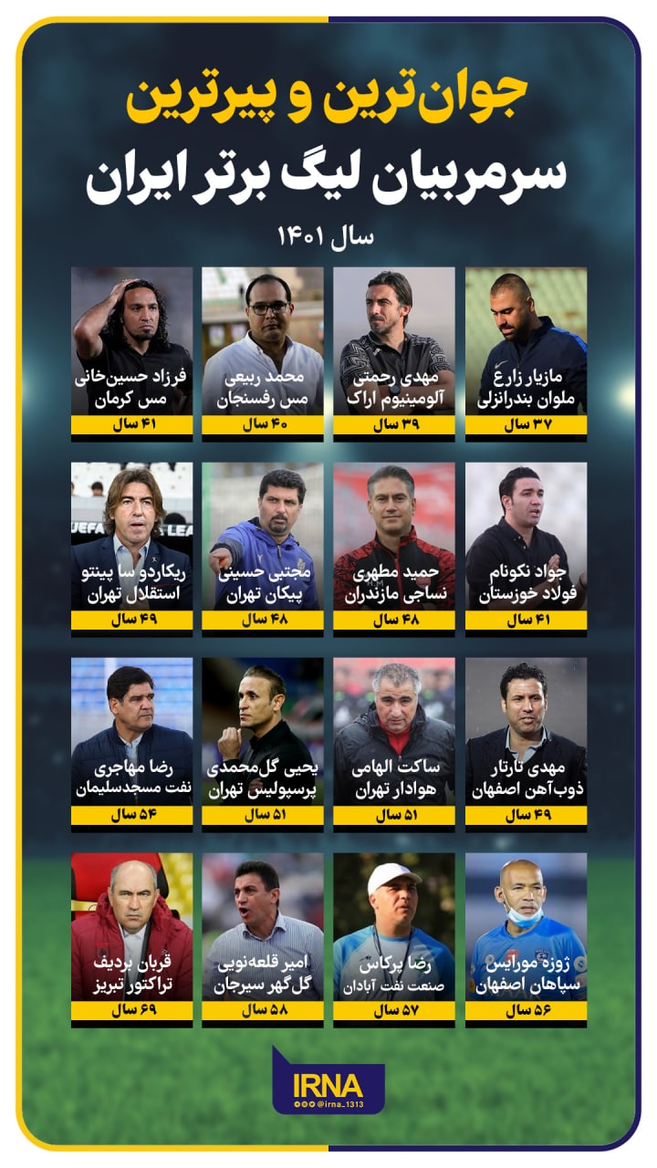 جوان‎ترین و پیرترین سرمربیان لیگ برتر ایران