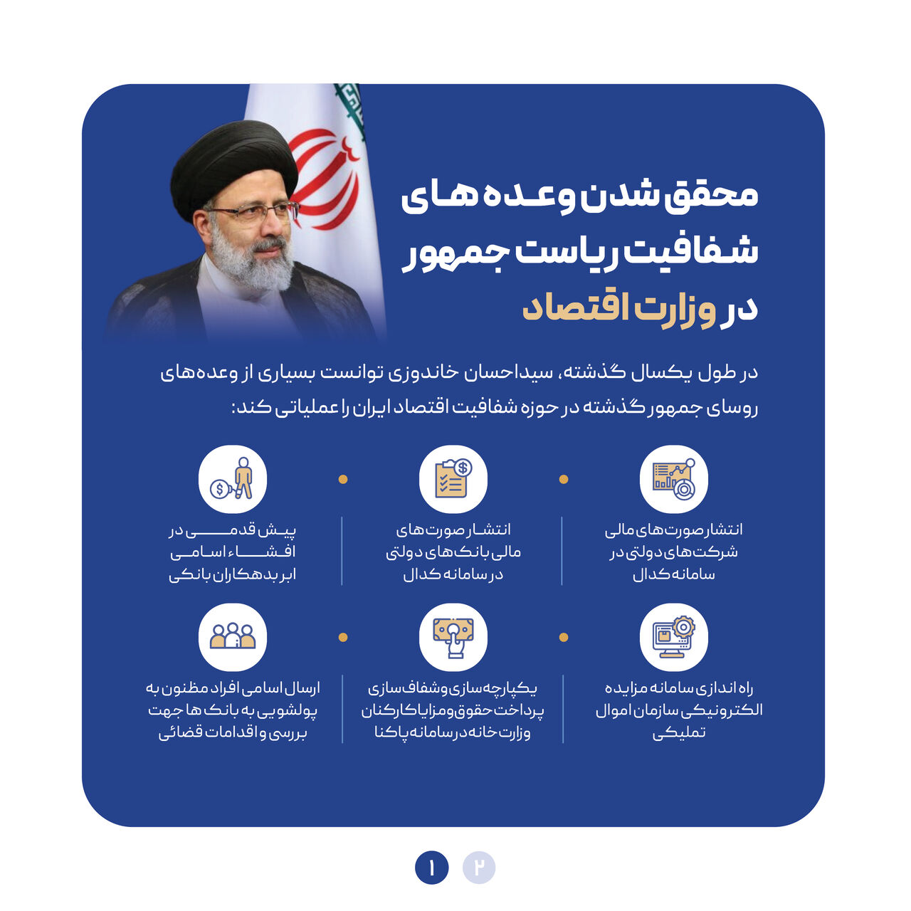محقق شدن وعدههای شفافیت ریاستجمهور در وزارت اقتصاد را در این اینفوگرافیک ببینید.