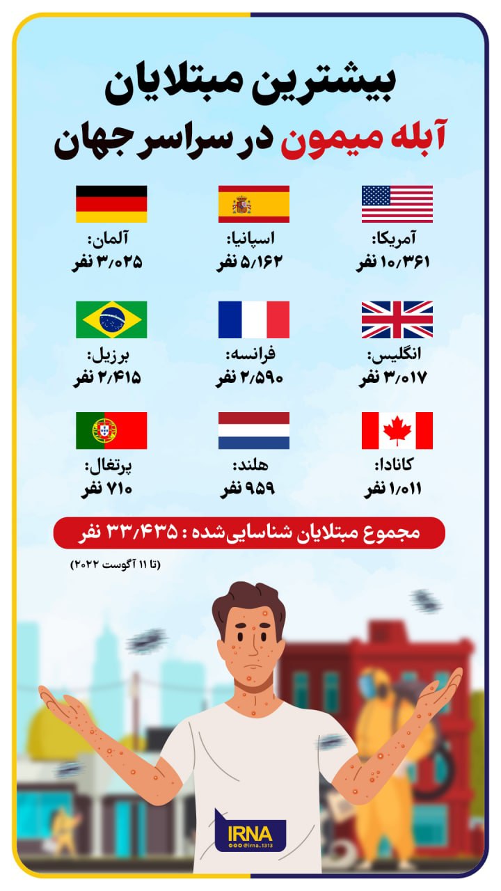 اینفوگرافیک | بیشترین مبتلایان آبله میمون در سراسر جهان