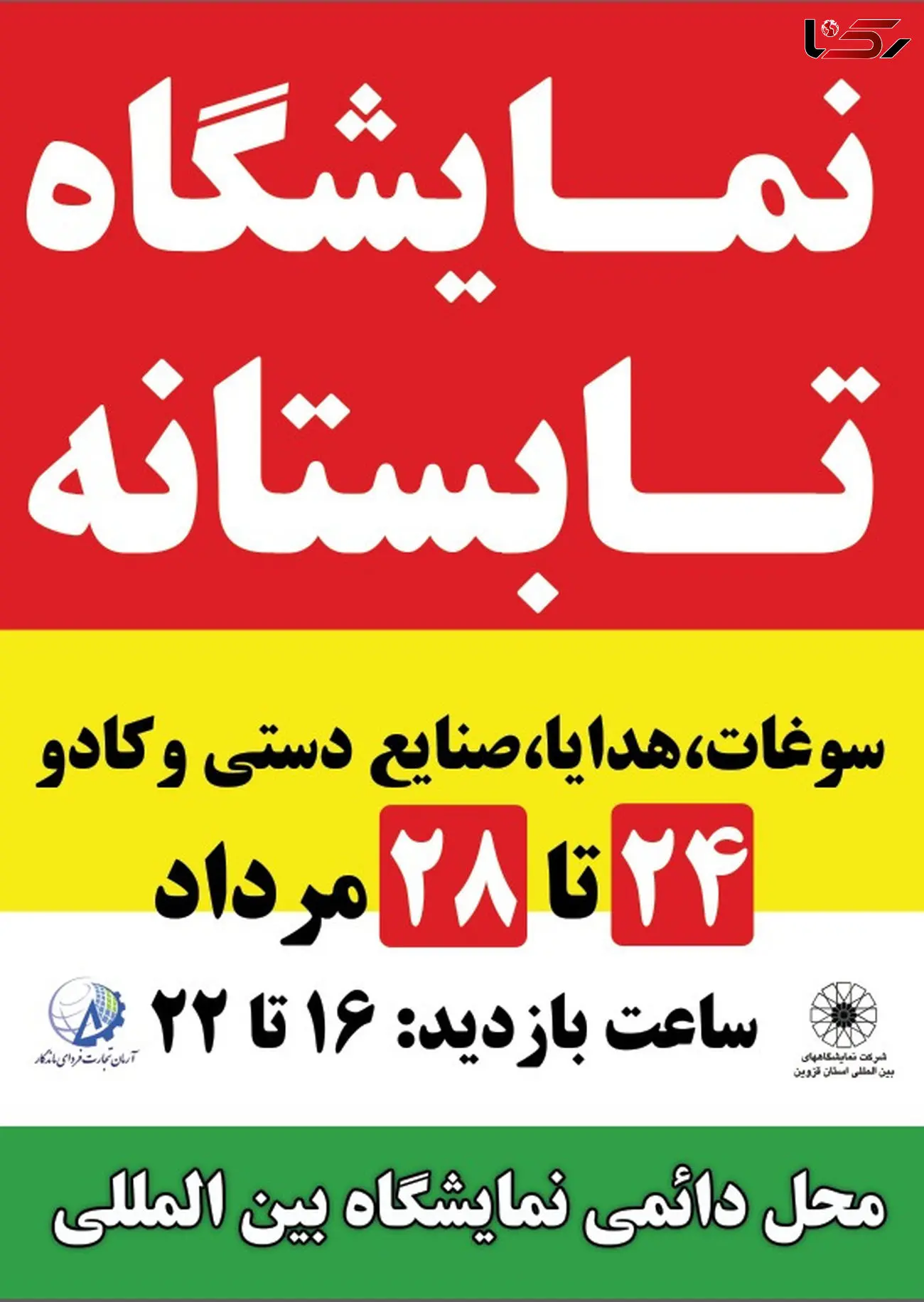 این مسئول در پایان افزود، نمایشگاه تابستانه در مدت برگزاری از ساعت 16 الی 22 در محل دائمی نمایشگاه های بین المللی استان قزوین دایر می باشد و پذیرای بازدیدکنندگان محترم خواهیم بود.